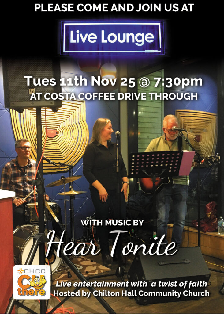 - Tue 11th Nov – Live Lounge at Costa hosted by CHCC with ‘Hear Tonite’ (see poster below)